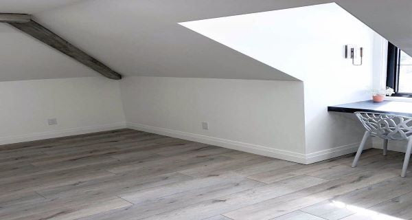Type: Vinyl Plank FlooringColour: Mountain AirCollection: Surewood Plus Width: 8-7/8"Thickness: 8mm with cork backingInstallation: Click